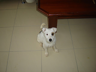 Jak to všechno začalo? Zcela nevinně, naprosto nás strhl víkendový pořad Cesara Millana – Znalec psí duše. Především proto jak Cesar dokázal vystupovat, alespoň základní znalosti o chování ke psům se jistě hodí každému a tomu všemu jsme bedlivě naslouchali. Sledování psíků v televizi v důsledku způsobí, že nakonec po nějakém zatoužíte. Po tvorečkovi, který vás bude věrně doprovázet na cestách. Právě v tomto pořadu jsem zahlédl poprvé plemeno Jack Russell Terrier, poprvé pod jeho pravým jménem. Parson Russell Terrier je jednoduše řečeno Jack Russell s dlouhýma nohama a imponoval mi o maličko více než Jack Russell. Nicméně doba ještě neuzrála. O notně dlouhou dobu déle se vše semlelo podstatně rychleji, rozhodli jsme se skutečně přivézt nového člena do rodinného kruhu. Po výměně několika emailů s chovatelem, jsme se vyrazili podívat na dva adepty. Jedno, ještě malé štěně, bylo v ohrádce jak pytel čertů, nabídnutou ruku sápalo drápy a zoubky, druhé již odrostlé ale krásně huňaté s hezkým monoklem, které opravdu něžně okusovalo prsty. Nastalo samozřejmě dilema. Zkrátím to, vzali jsme si to větší, které už mělo od chovatele volací znak Jack, mimo jiné proto, že podobného měli prarodiče (uvidíme jak se jim bude líbit, až jim ho představíme). Jack nikdy předtím nejel autem, cestu však zvládl na výbornou, doma jsme ho opláchli a naspodu husté srsti vykoukli četné černé flíčky. Jack vypadá jako opravdový švihák. Co víc, má skvělou povahu. Je u nás jen pár dní a nejraději má všechno pod dohledem, aby mu nic neuniklo a každého kdo opustí obývák jde zkontrolovat.